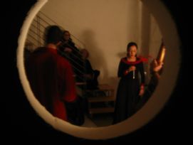 כאורפאוס היורד אל השאול בעודו מנגן, יורדת ויקטוריה המייללת במדרגות הלולייניות מקצהו העליון של הבור ועד תחתיתו. כמחפשת למצוא תכלית בתחתית יחד עם שני שותפיה למופע הערב, ג'יי. סי. ג'ונס בקונטרבס וטקסטורות אלקטרוניות. ונורי יעקובי בויולה ובחליל. השניים מסתערים מיד על המיתרים בקשתות שלופות, ומייצרים כמות רעש מפתיעה בעצמתה לשני אנשים.