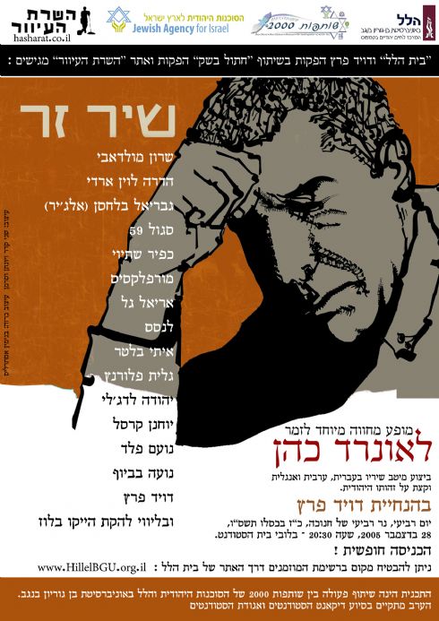 איכשהו תמיד יוצא שלקראת סוף השנה אני נעלם מהבלוג, אולי זה העניין של הוצאות מוכרות לצורכי סיום שנת המס או ווטאבר, אולי זה העניין של לחץ הזמנים אבל איכשהו תמיד יש הרבה תקליטים ומוזיקה לייצר בסביבות התאריך הזה, אז למי שתהה עדיין לא נואשתי לחלוטין מהבלוג הזה, אני מקווה שיהיה זמן לסיכום שנה מוצלח ויהיה זמן שוב לחזור ולכתוב כאן בשנה הקרובה בנתיים הנושא שלשמו התכנסו כאן. ביום ד' הקרוב (28-12 ) שעה 20:30. בבית הסטודנט – אוניברסיטת בן גוריון באר שבע תערך הופעה של הרבה אומנים שאני מאוד אוהב אישית שיבצעו שירים של לאונרד כהן בעיקר בעברית מעט באנגלית וגם באנגלית