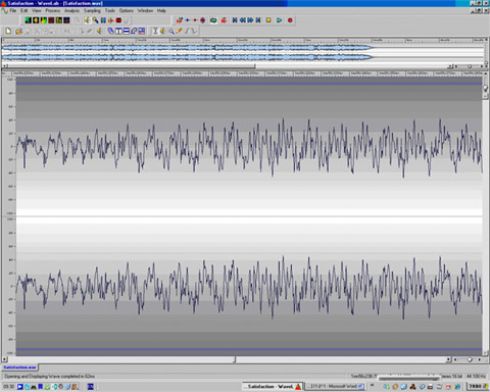 רק לצורך השוואה גראפית הנה SATISAFACTION של הרולינג סטונס, שיר שנחשב לפראי ועוצמתי במיוחד ועדיין זוכה כל מיני תארים מפוקפקים כגון הסינגל הכי טוב בכל הזמנים. שימו לב להבדל בין גלי הקול הן מבחינת קוי המתאר המעוגלים והנקיים והן מבחינת האינטסביות שלהם.