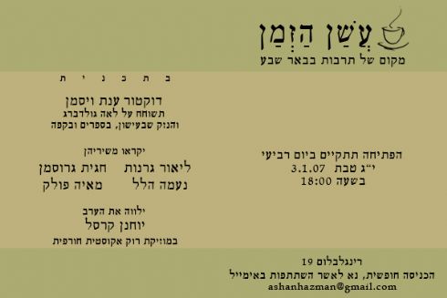 הי דוד, איזה כיף שפותחים את החנות הזאת… זה ממש יכול להוסיף צבע חדש לב"ש. אני מאוד מקווה שהמקום יתפוס כי יש לו פוטנציאל להפוך למכה המקומית לתרבות בבאר-שבע.