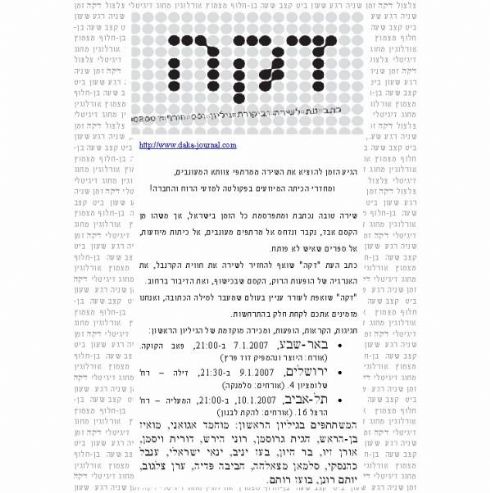 אחרי הפתיחה המוצלחת המעושנת והערמונית של "עשן הזמן", מגיע זמנם של חבורת ינשוף האבן לשירה צעירה (בעיקר ערן צלגוב ובועז יניב) לחגוג את הוצאתה של חוברת שירה דקה וראשונית עם מניפסט עקרוני.החוברת שנקראת – דקה. תושק בשבועיים הקרובים על פי מיטב עדות להקות הרוק בסיבוב הופעות בבאר שבע, ירושלים, ותל אביב.