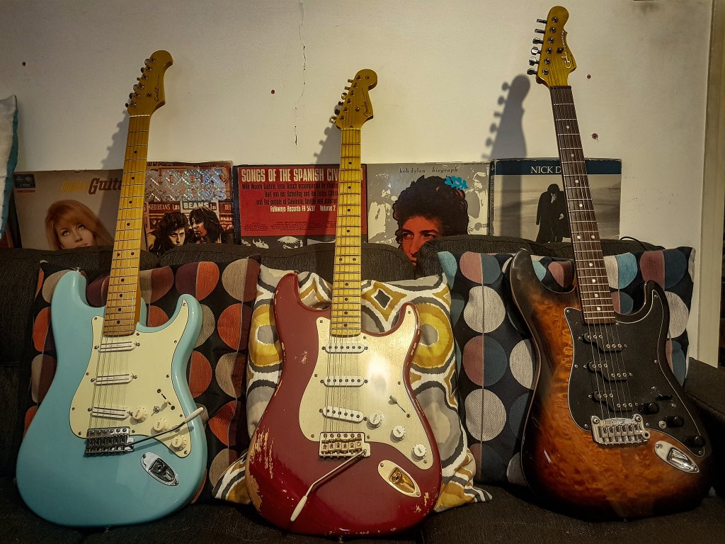 כהרבה מאוד גיטריסטים, עדיאל ואני בילינו חלק ניכר מחיינו במרדף אחר צליל הסטרט המושלם. כמו כולם גם אני רציתי סטראטוקסטר שתשמע בדיוק כמו מרק קנופלר/טריה ריפדאל/ריי קודר. וכמובן שאין חיה כזאת. כמי שהיה מאוהב בצליל של קנופלר, החשמלית הראשונה שלי היתה סטראט אדומה שאבי קנה לי. חיקוי קוריאני של חברת samick שזכורה לי כגיטרה טובה, אבל בעוונותי פירקתי אותה בשביל לנסות ו״לשפר״ אותה. כשהבנתי שאני לא מצליח לעשות כלום, נתתי למישהו שהבטיח שירכיב לי אותה בחזרה ומאז אבדה הגיטרה. אחרי זה כבר לא קניתי סטראט. הייתי בפוזה שאני נגד הזרם. הלכתי עם גיטרות אלטרנטיביות, ולא אני לא מדבר על אלטרנטיב לייט כמו גיטרות אחרות של פנדר – הטלקסטר היגואר, או הגיבסון. חיפשתי את הגיטרות העתיקות והכי מוזרות שיכולתי למצוא. הונר, ג׳ולנה, מיה, אבל כשהבנתי שהן טובות אבל לא בדיוק מה שחיפשתי, חזרתי לבסוף לעולם הגיטרות המודרניות, והלכתי עם איבנז רבע נפח, ומאוחר יותר איבנז טולמן גראנג׳ית שהיתה כמו סטראט מבחינת הפיקאפים אבל נראתה מספיק אחרת כדי שארגיש מיוחד (רם אוריון מנגן עד היום על אחת כזו). למרות שבסתר ליבי, תמיד נמשכתי לגיטרות כמו סטראט עם שלושה פיקאפים. שוב ושוב סירבתי להיכנע לתשוקות הנעורים שלי לצליל הסטרטוקסטר. עד שלפני כמה שנים בבת אחת נפרץ הסכר. הבנתי שאני בן ארבעים וחמש ולא מזיז לי אם סטראט הן הגיטרות הכי פופולריות בעולם, רציתי להגשים את חלומות הילדות שלי. והתחלתי לחפש סטראט מושלמת. לקח לי הרבה זמן וגיטרות להבין שאין דבר כזה.